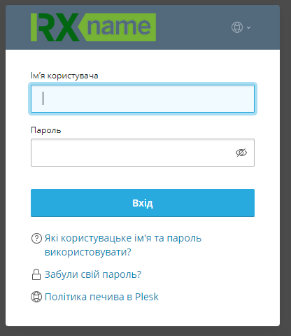 Перейдите в панель управления Plesk и авторизуйтесь, используя свои данные.
