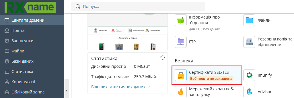 - В разделе «Безопасность» вашего сайта нажмите «SSL/TLS Сертификаты».